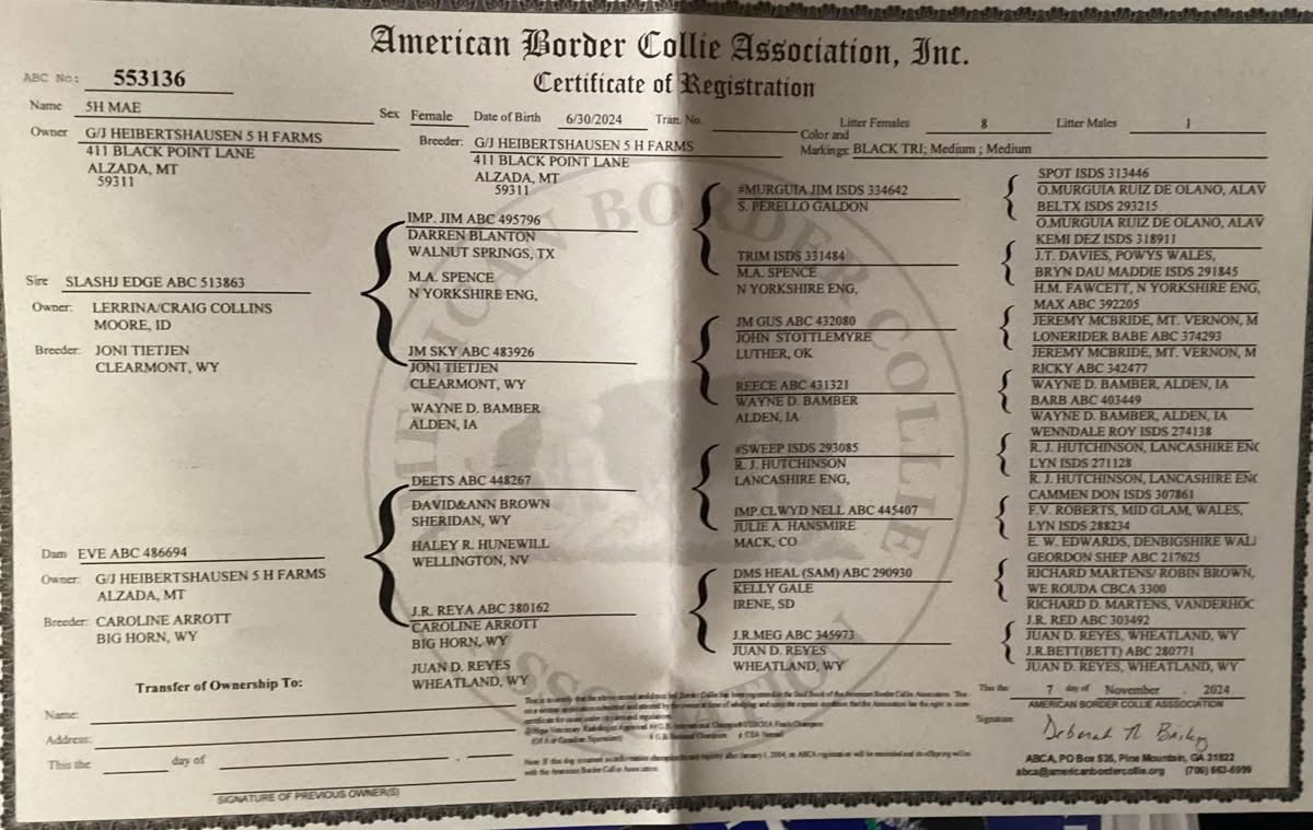 Mae’s sire is the 2023 USBCHA Nursery Champion Slash J Edge and her dam is Eve.
