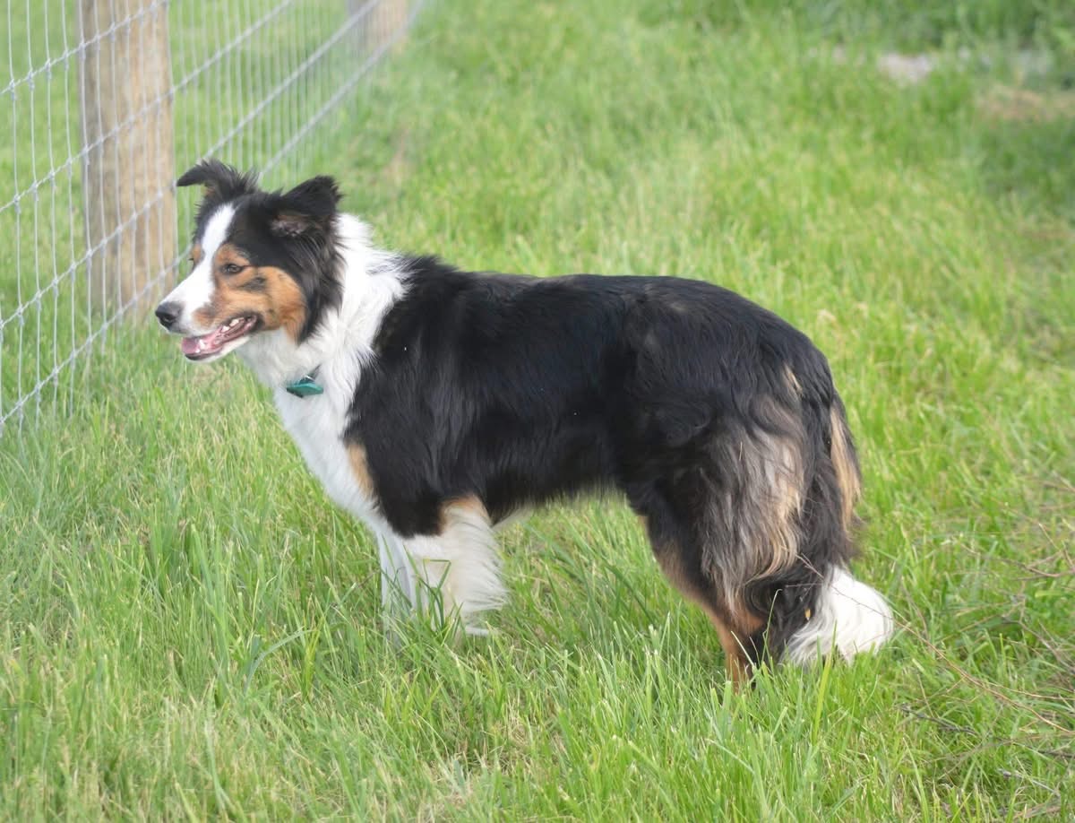 SHE has NOT been on sheep. She has shown a lot of interest but i am not a trainer and will not risk our sheep on a young dog that does not know anything.